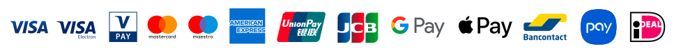 VISA, MasterCard, AMEX*, Maestro, V-Pay, JCB, Union Pay, Apple Pay, Android Pay
