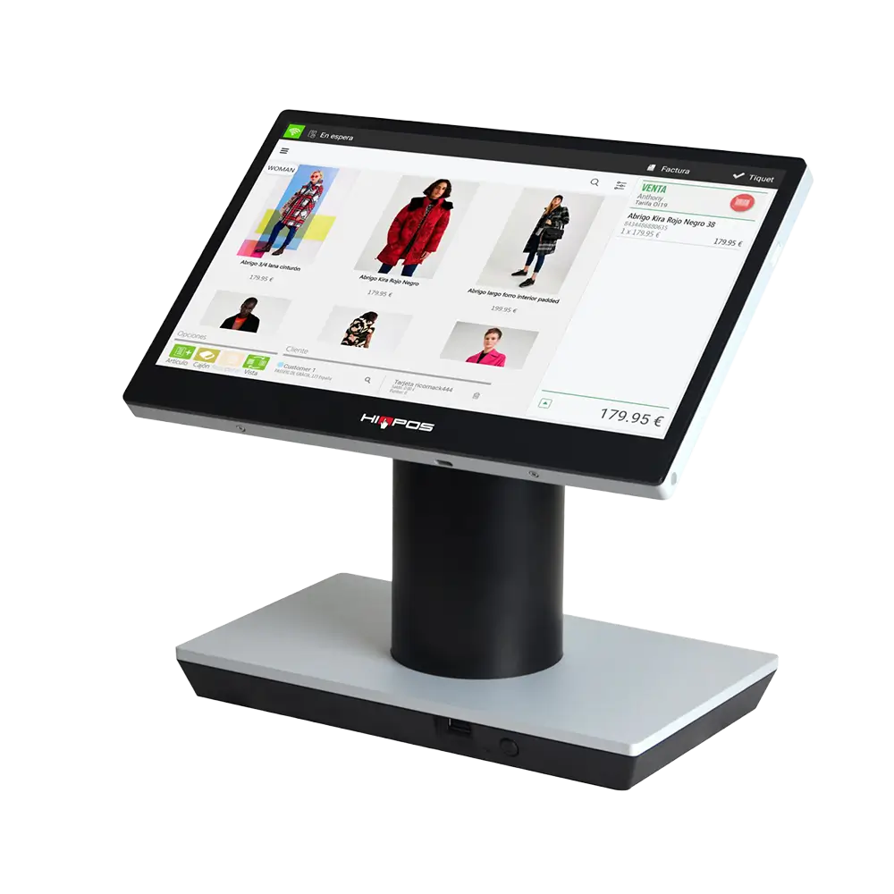 La Hiopos Tablet es una TPV táctil con una pantalla de 13,3 pulgadas (1920 x 1080 píxeles FULL HD) y un diseño refinado y robusto que se integrará perfectamente en su establecimiento. Gracias a su pantalla extraíble, podrá vender y presentar sus productos en forma de catálogo desde cualquier lugar de su establecimiento. El TPV ideal para comercios minoristas (disponible para todo tipo de empresas).